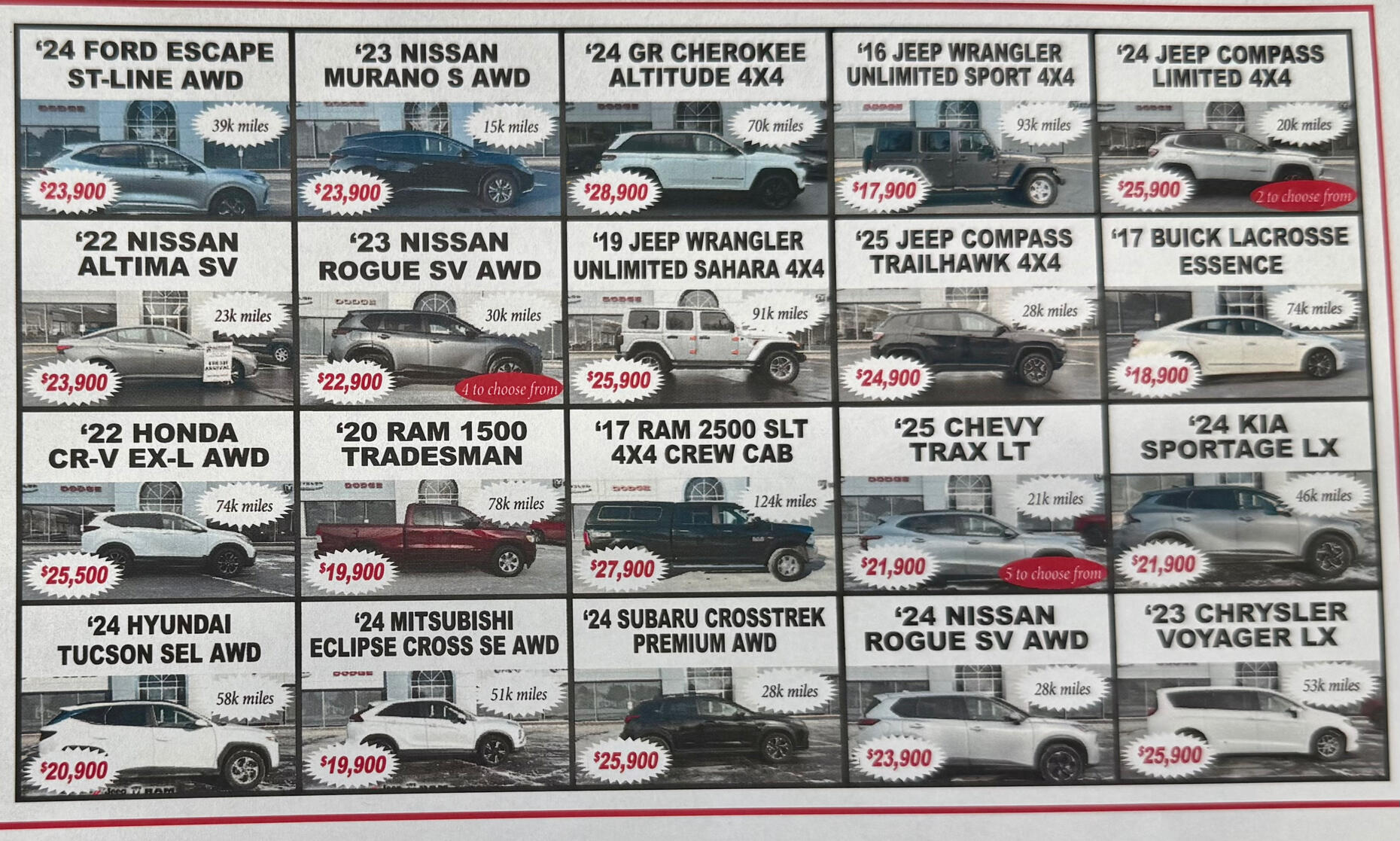 • We typically and routinely send the bottom 1/5th of trades straight to auction to sell to gthe little car lots. We only sell vehicles following PASSING the Wisconsin Safety Statue Checklist